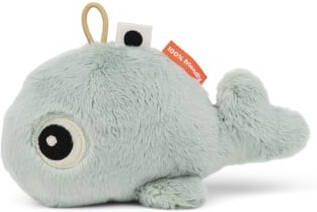 Wally houdt ervan om de kleintjes te vermaken. De walvis rammelaar is een perfect eerste speeltje. Het is gemakkelijk vast te pakken en laat baby verschillende details en geluiden ontdekken. Wally's staartvin maakt een opwindend krakend geluid. Kleine vingertjes houden van de zachte textuur van het babyspeeltje. De rammelende en krakende geluiden wekken de nieuwsgierigheid van de kleintjes. Met het elastiek en een Universal ring kan de kleine rammelaar gemakkelijk worden bevestigd aan een speelkleed, kinderwagen of autostoel. De superzachte walvisrammelaar is verkrijgbaar in een zachtblauwe tint. Product details: Afmetingen (lengte x breedte): 15 x 9 cm. Materiaal: stof: 100% polyester. Vulling: 100% polyester vezels (gerecycled). Wasvoorschriften: wasbaar op 40°C. Niet in de droogtrommel. Leeftijd: van 0 maanden/li>.