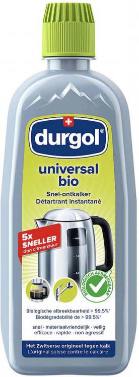 De Durgol ontkalker universeel biologisch is een ontkalker op basis van melkzuur. Verwijder snel en eenvoudig kalkaanslag van huishoudelijke apparaten zonder het materiaal aan te tasten.