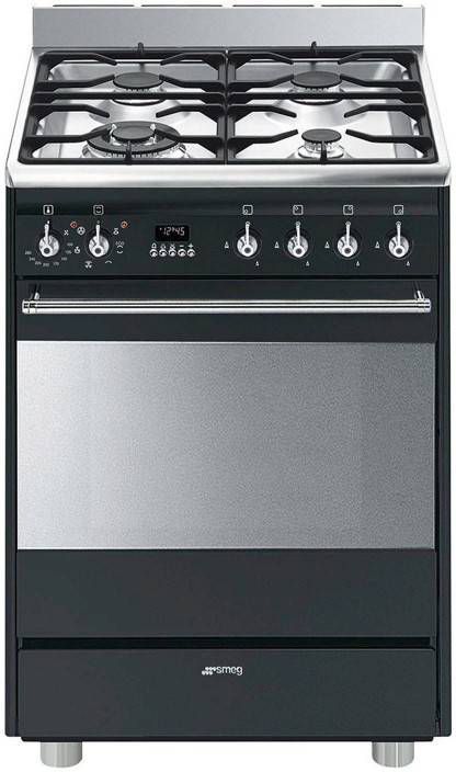 Het SNLK61MA9 Antracietgasfornuis van Smeg heeft de beschikking over 4 kookzones en heeft een oven met een inhoud van 70 liter.